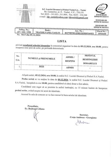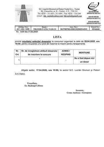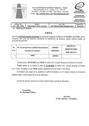 Rezultate concurs organizat in data de 13.10.2025 pentru ocuparea postului de mașinist la masini pentru terasamente.pdf