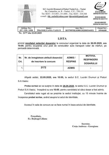 Rezultate concurs organizat pentru ocuparea unui post de conducător auto transport rutier de mărfuri.pdf